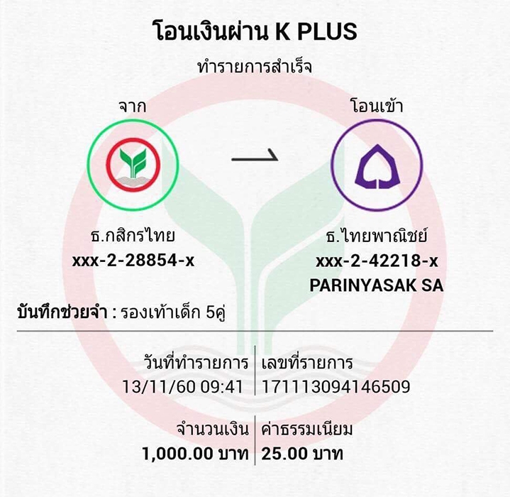 คุณ Pichai Posuk รองเท้าพละ 5 คู่ 1000 บาท